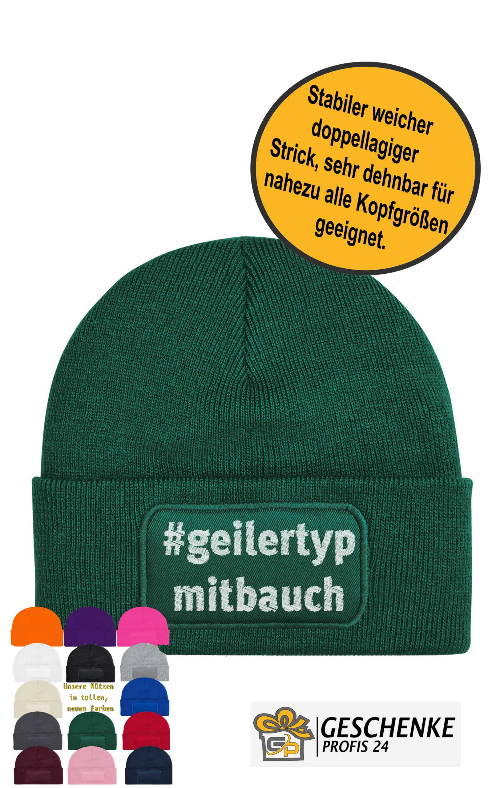 Sie erwerben hier eine neue und ausgefallene Beanie Mütze mit lustigem Aufdruck #geiler typ mit Bauch für Herren, Männer und Kinder. Sie wollen einen ganz besonderes Geschenk für sich oder als personalisiertes Geschenk für Freunde. Eine Mütze als Partygag oder einfach für den Alltag. Eine Wintermütze für Fasching mit Ihrer Zunft.