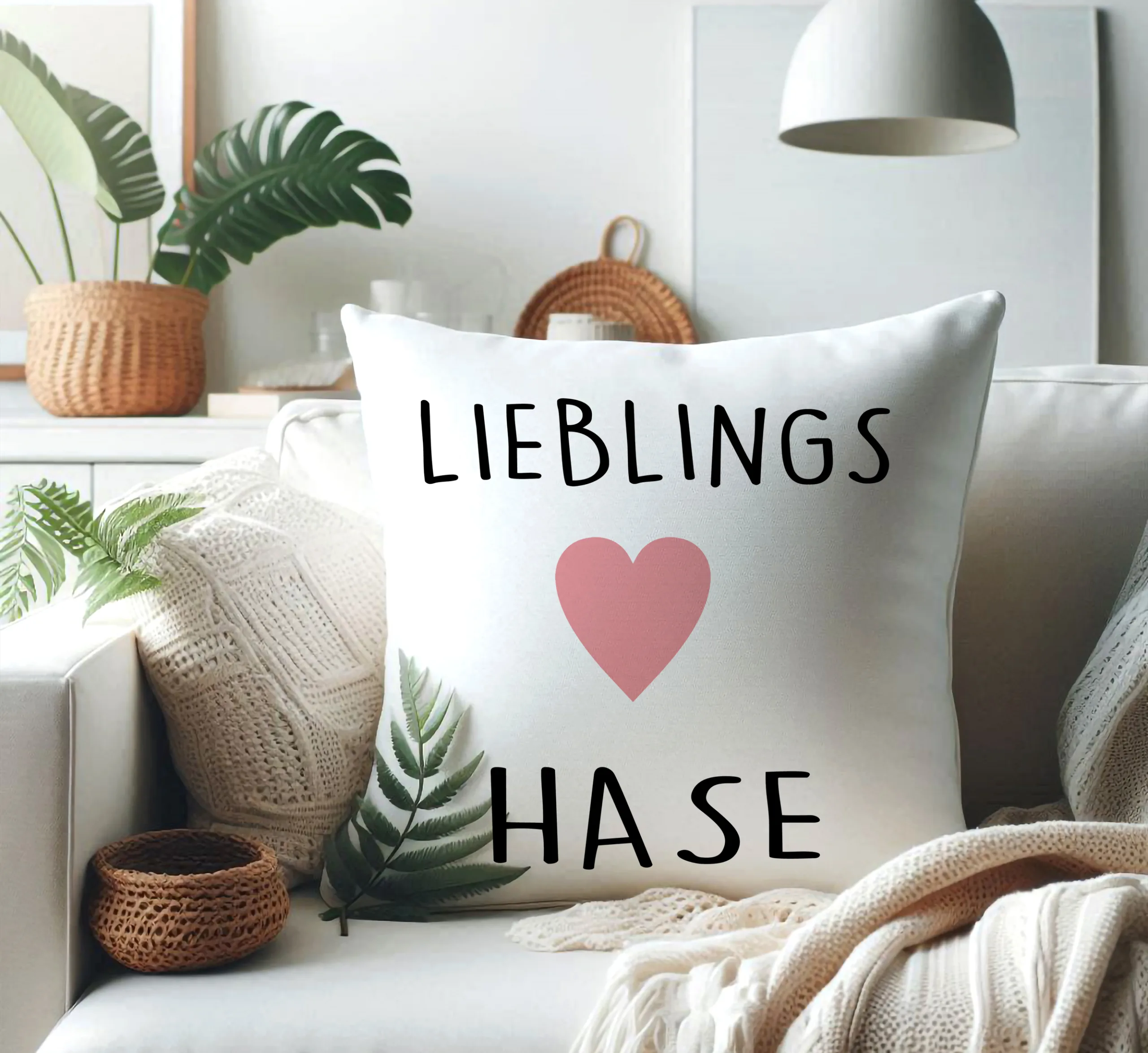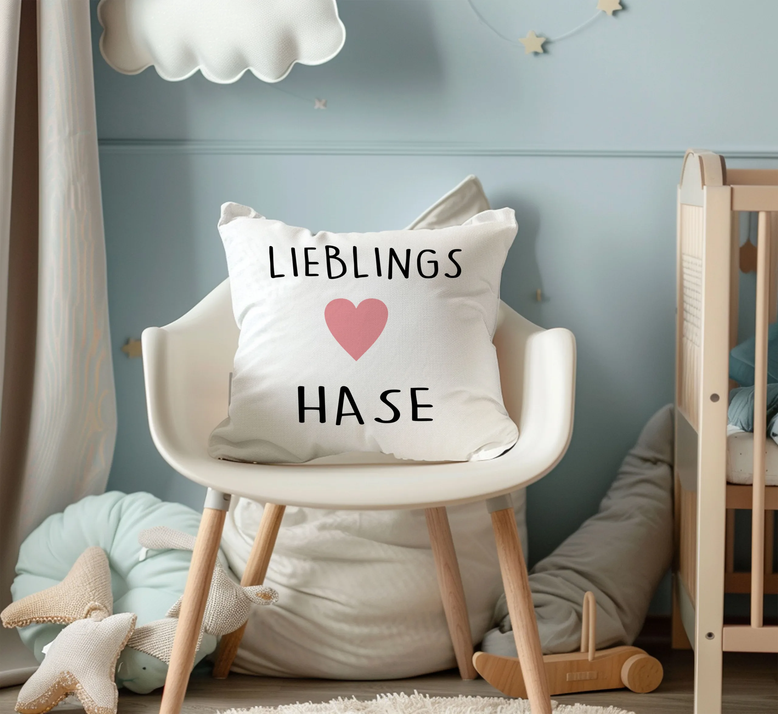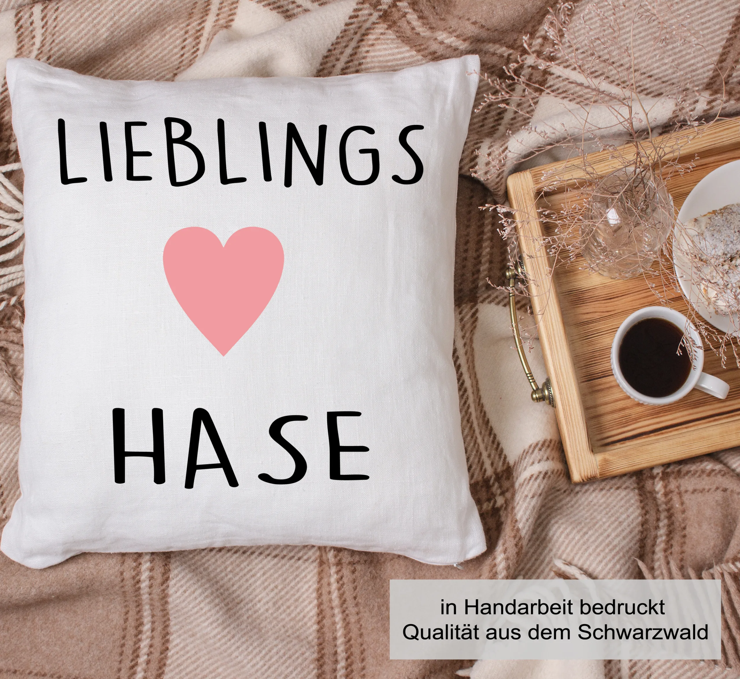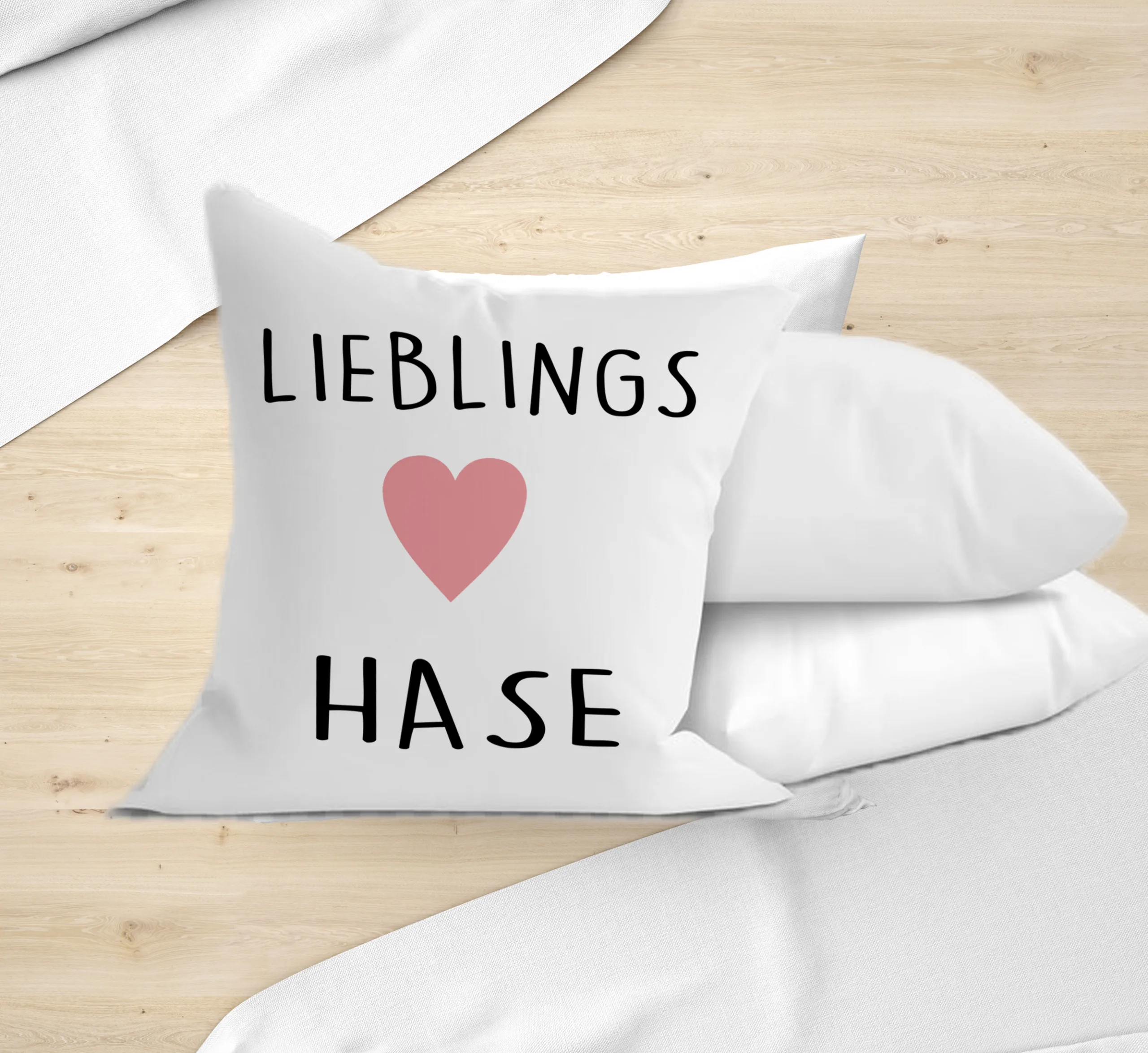„Ein hochwertiges Personalisiertes Bedrucktes Kissen – Lieblingshase „