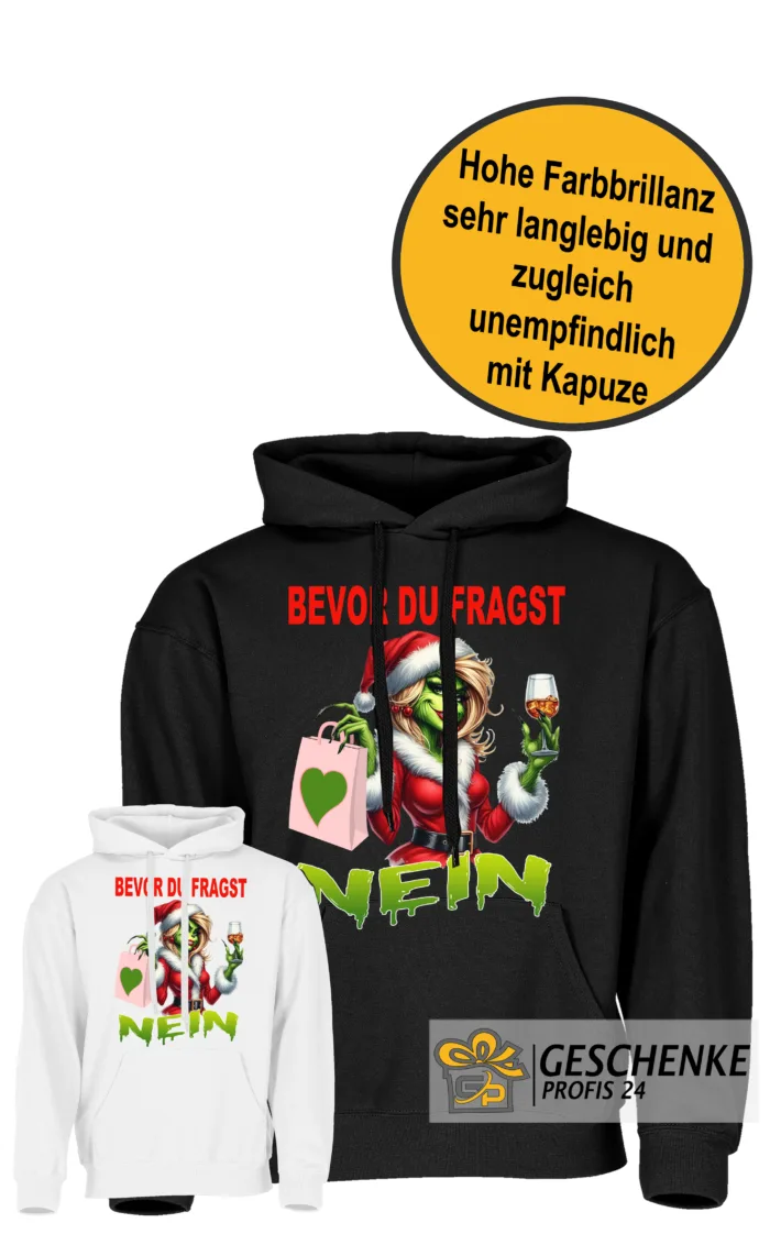 Sie erwerben hier ein neuer und ausgefallenes lustiger Grinch Girl Bevor du Fragst Nein Hoodie für Männer, Frauen und Kinder. Sie wollen einen ganz besonderes Geschenk für sich oder als personalisiertes Shirt für Freunde. Eine TShirt als Partygag oder einfach für den Alltag. Dann sind Sie hier genau richtig!