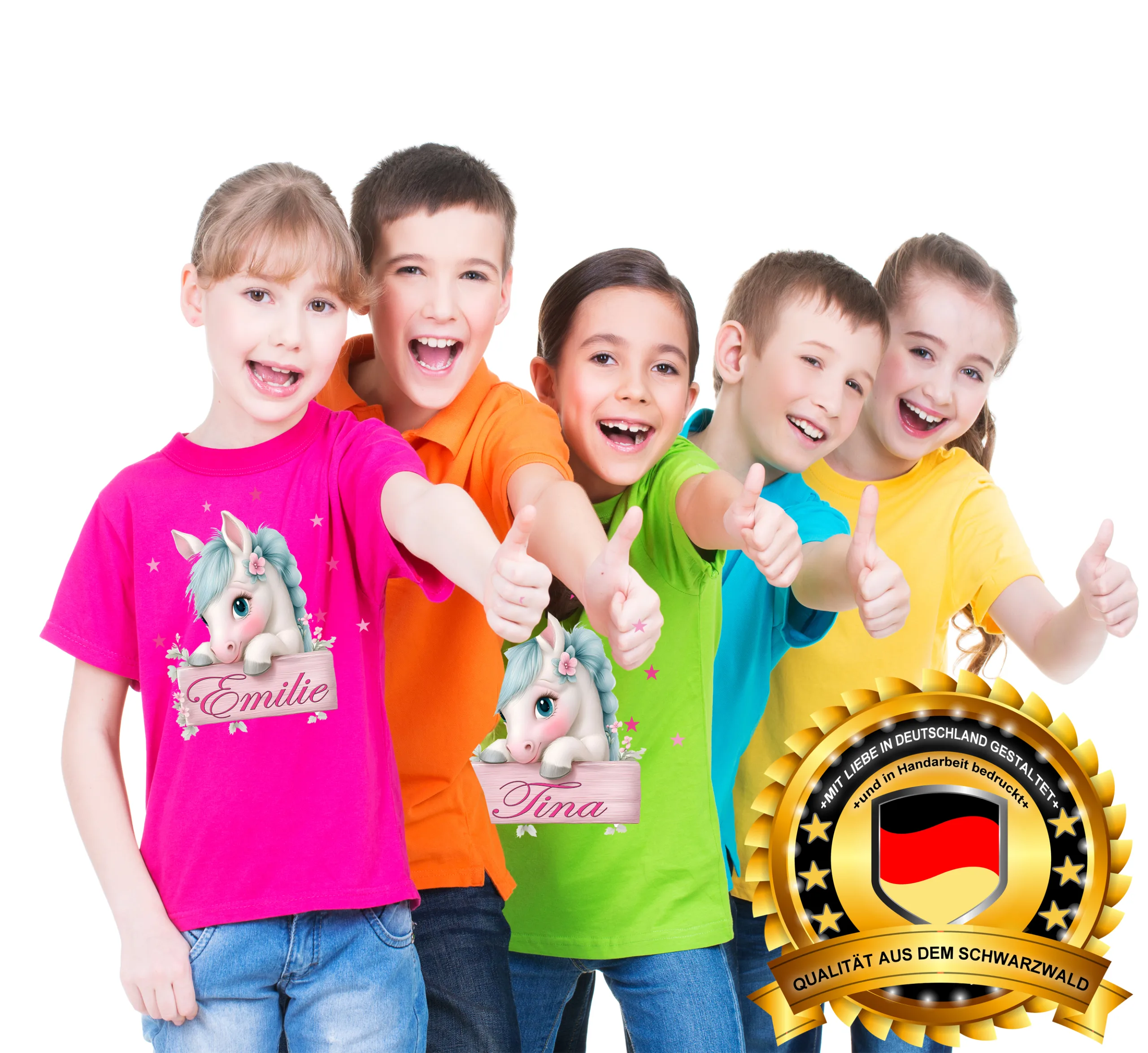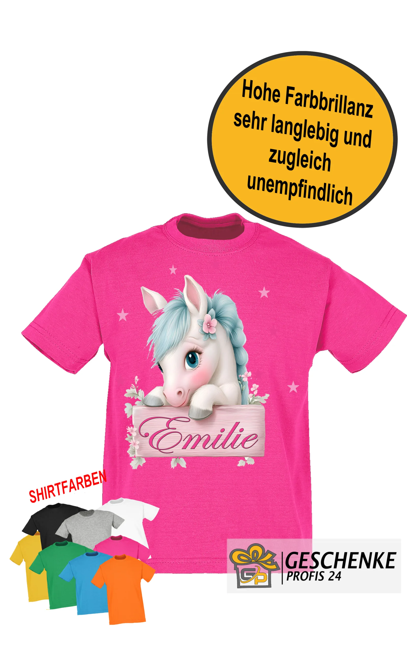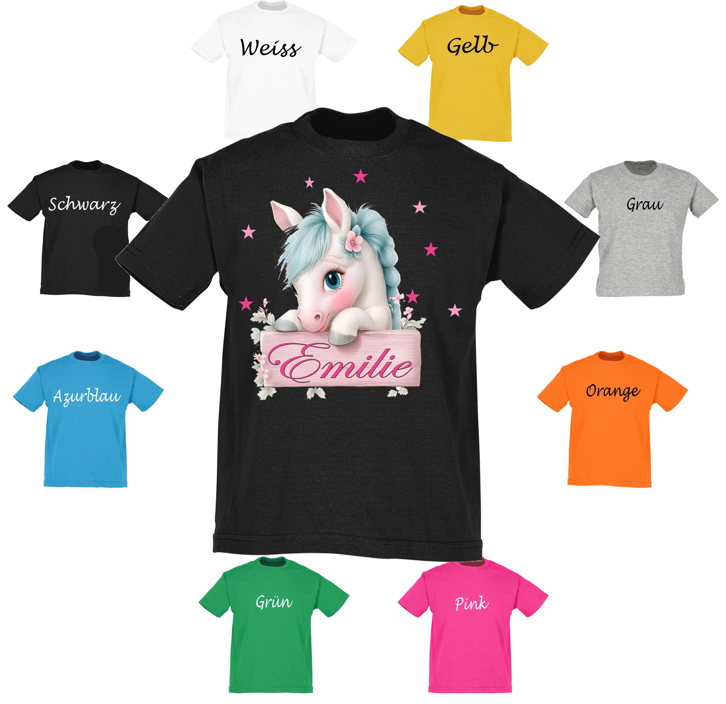 Sie erwerben hier ein neues und ausgefallenes Kinder T-Shirt Pferd personalisiert mit Wunschnamen.