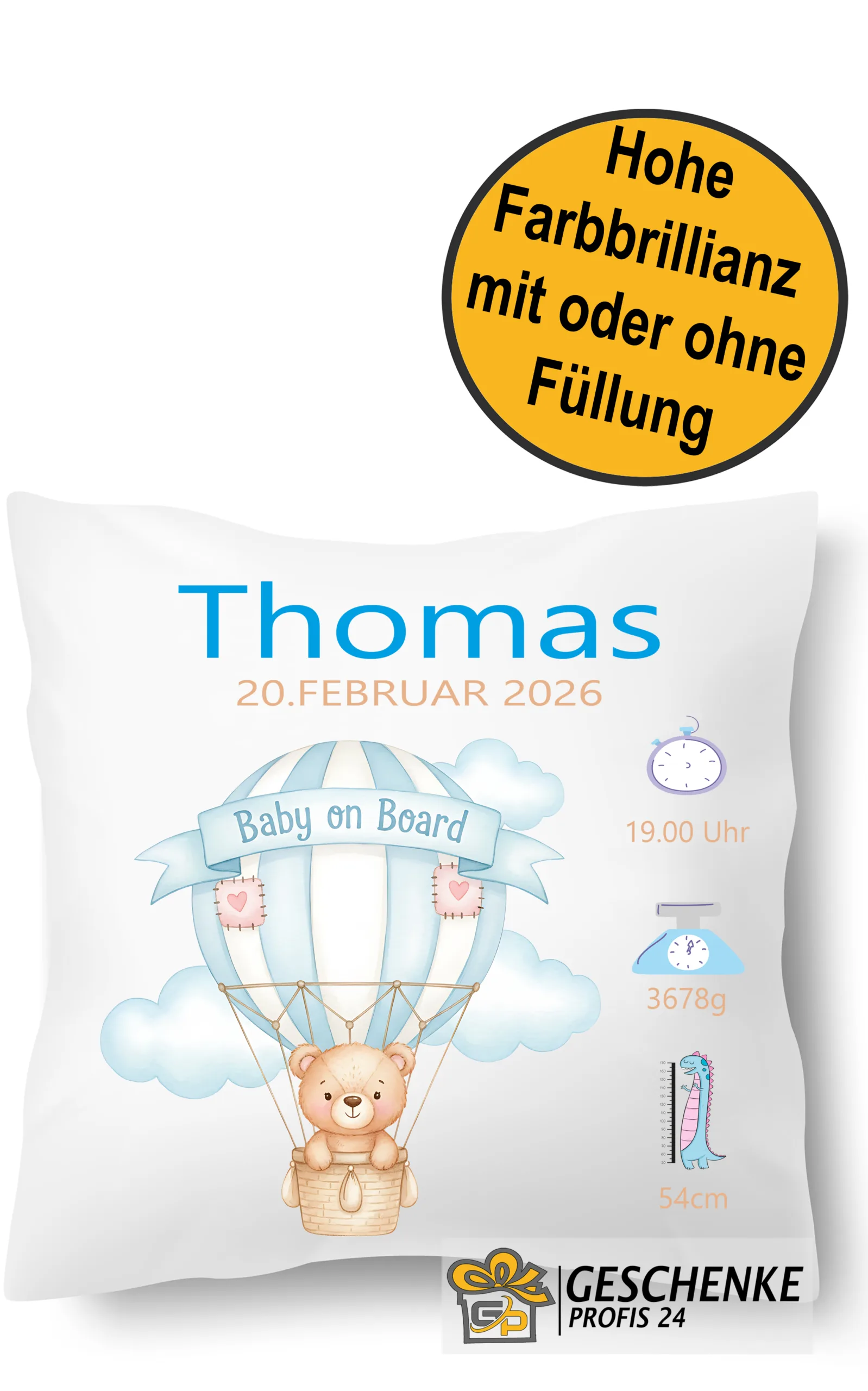 Sie erwerben hier einen neues und ausgefallenes Personalisiertes Kissen Teddybär im Ballon zur Geburt, Deko Kissen, Kissenhülle mit Füllung für Männer, Frauen und Kinder. Sie wollen einen ganz besonderes Geschenk für sich oder als personalisiertes Kissen für Freunde. Ein Geschenk als Partygag oder einfach für den Alltag. Dann sind Sie hier genau richtig!