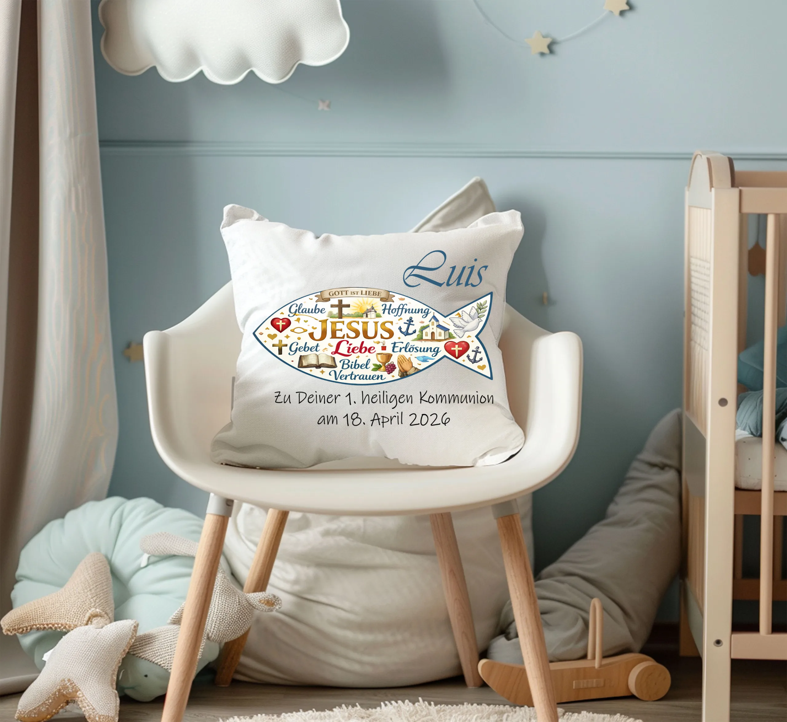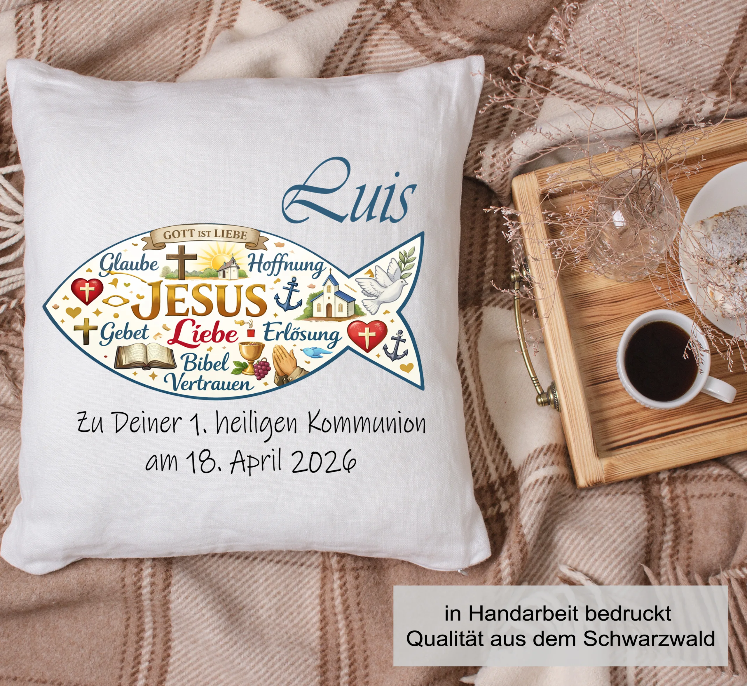 „Ein hochwertiges Personalisiertes Kissen zur Kommunion „