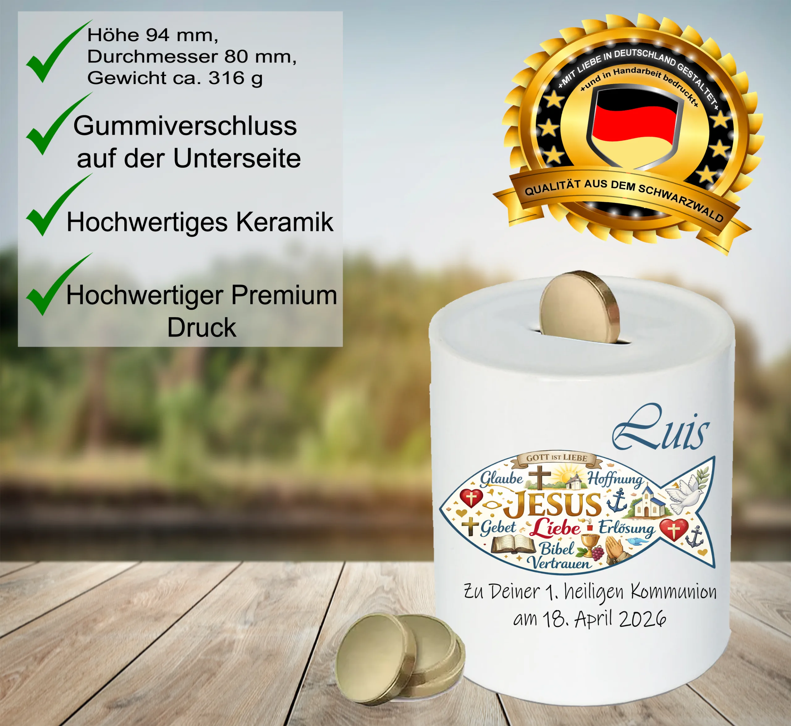 „hochwertige, personalisierte Keramik Spardose